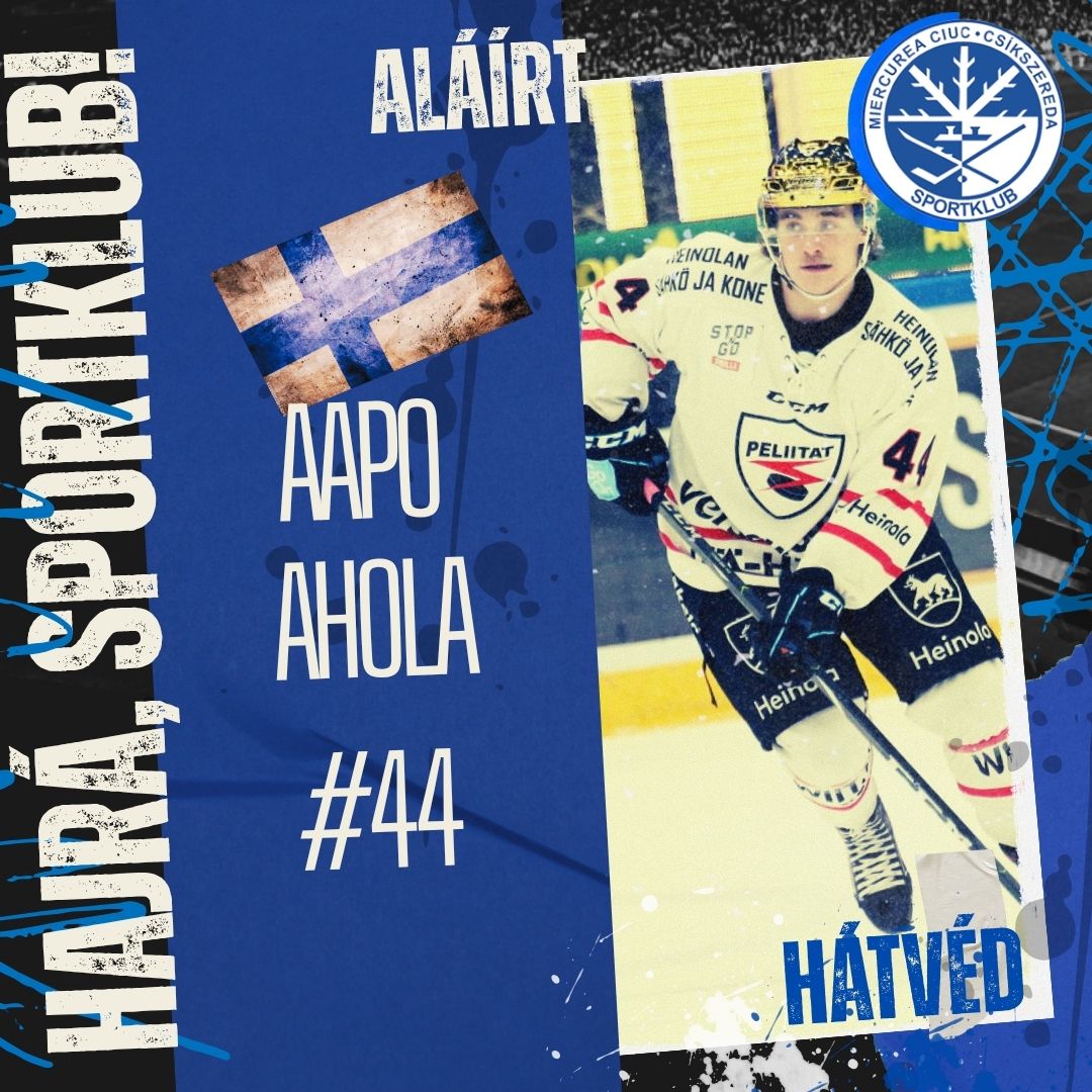 Lassan, de biztosan újdonsült, finn hátvédünkkel teljes a Csíkszeredai Sportklub csapata! A csehektől érkező magabiztos fellépésű jégkorongozó Aapo Ahola várja már, hogy kék-fehér mezben bizonyíthasson! Mi is várjuk, de nagyon!